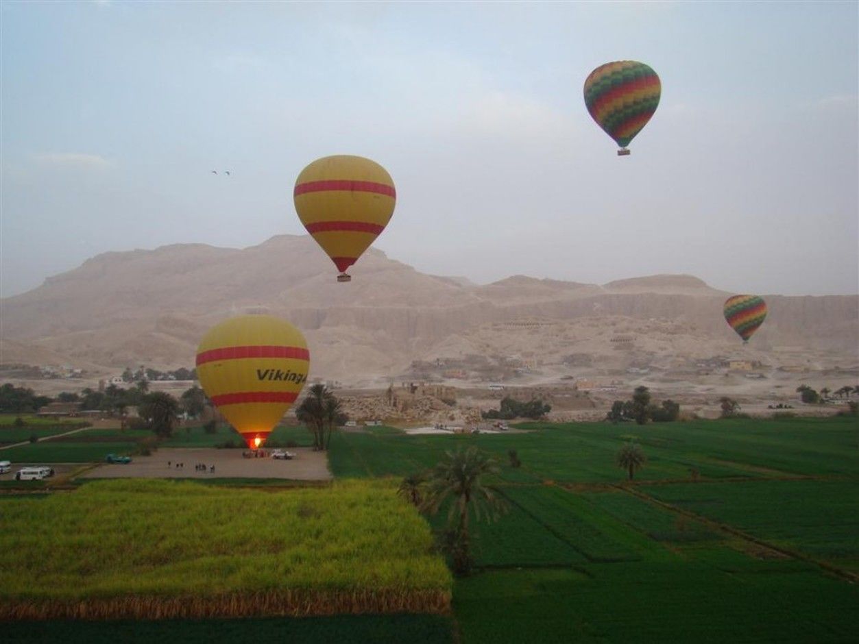 Asi o 20 minút po nás prichádza minibus, kúsok ďalej, pri Níle, pristupuje ďalších asi 8 turistov. Cestou vyplníme tlačivo, kde uvádzame svoje meno a hlavne svoju hmotnosť. O pár minút sme na mieste… Okolie je posiate balónmi viac či menej pripravenými k odletu. Ten náš sa práve plní a pred našimi zrakmi sa mení na zeleného obra. Náš kapitán Ghouda – sympatický mladý muž , z ktorého sála zmes rozhodnosti, profesionality, pokoja a zanietenia pre svoju prácu, ktorú evidentne miluje, si nás zhromaždí do kruhu okolo seba a poskytne nám asi 10-minútové miniškolenie v angličtine. Starostlivo overuje, či každý porozumel a každému bolo pretlmočené. Keď sa uistí, že každý z nás pochopil význam pojmu „land position“, dáva pokyn na nástup.